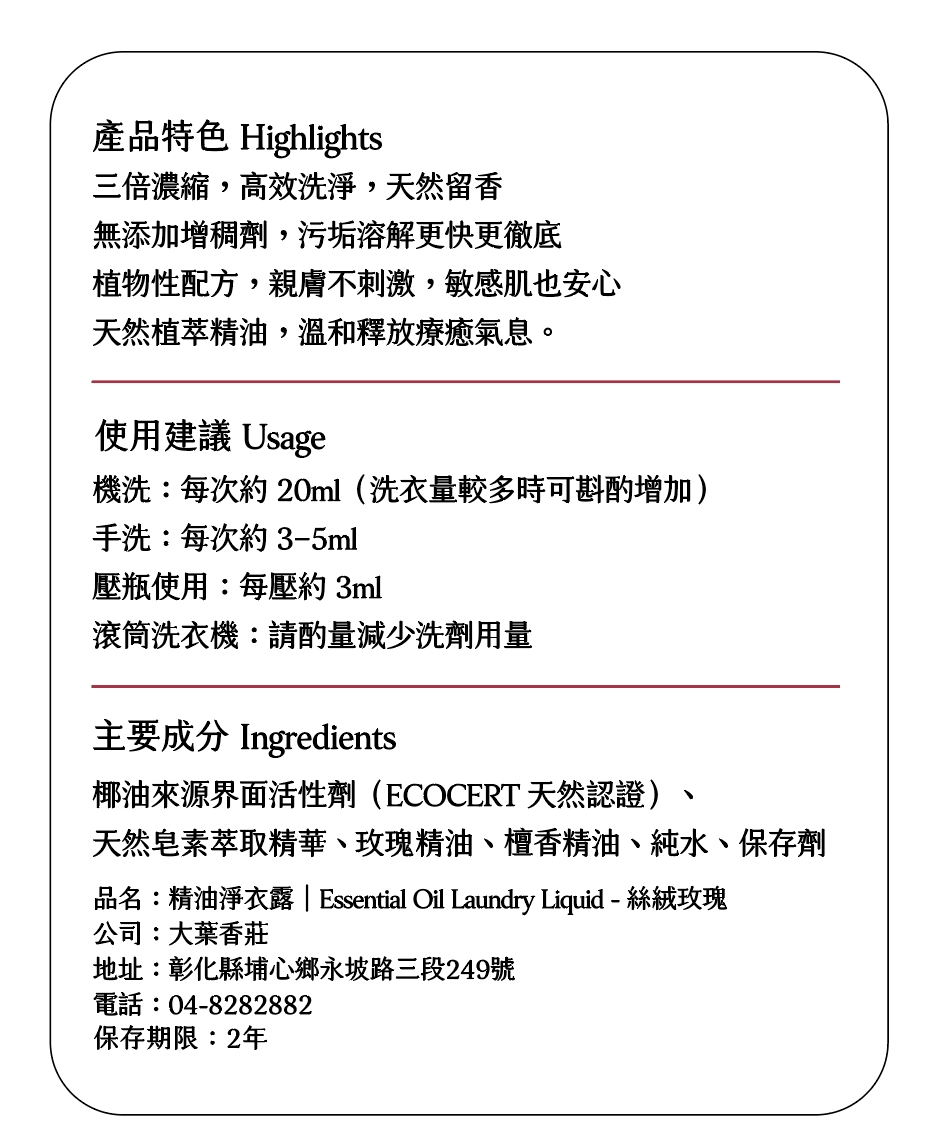 品名:精油淨衣露(絲絨玫瑰、金緻檀香)